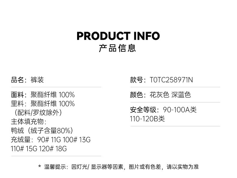 | Справочная высота: | 90см, 11G, 100 см, объем пухового наполнения 13 г., 110см, 15г пухового наполнителя., 120 см, объем пухового наполнения: 18 г. |