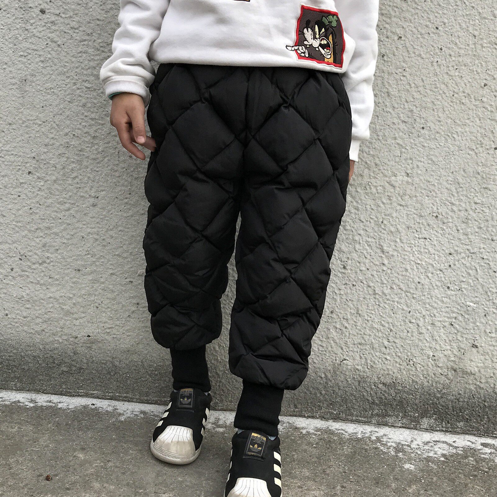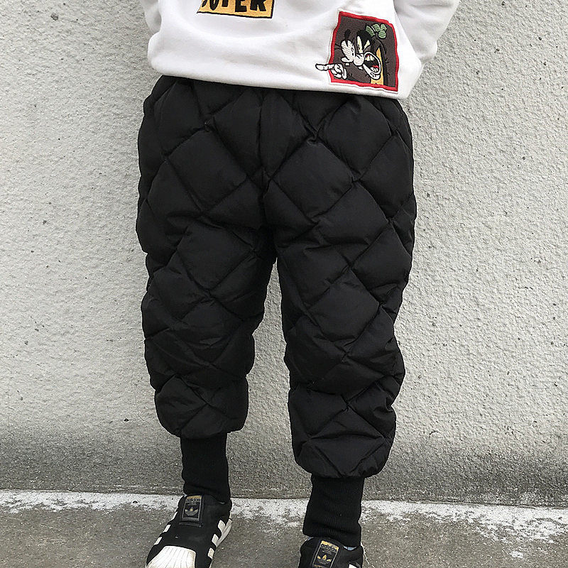 Детские демисезонные удерживающие тепло дорожные бархатные штаны с пухом для мальчиков, утиный пух