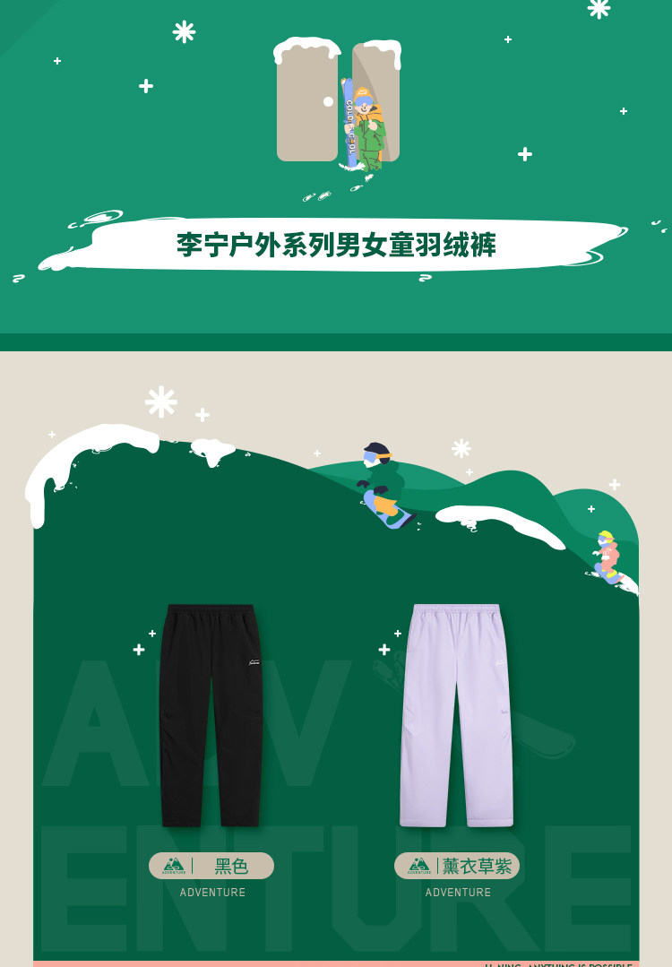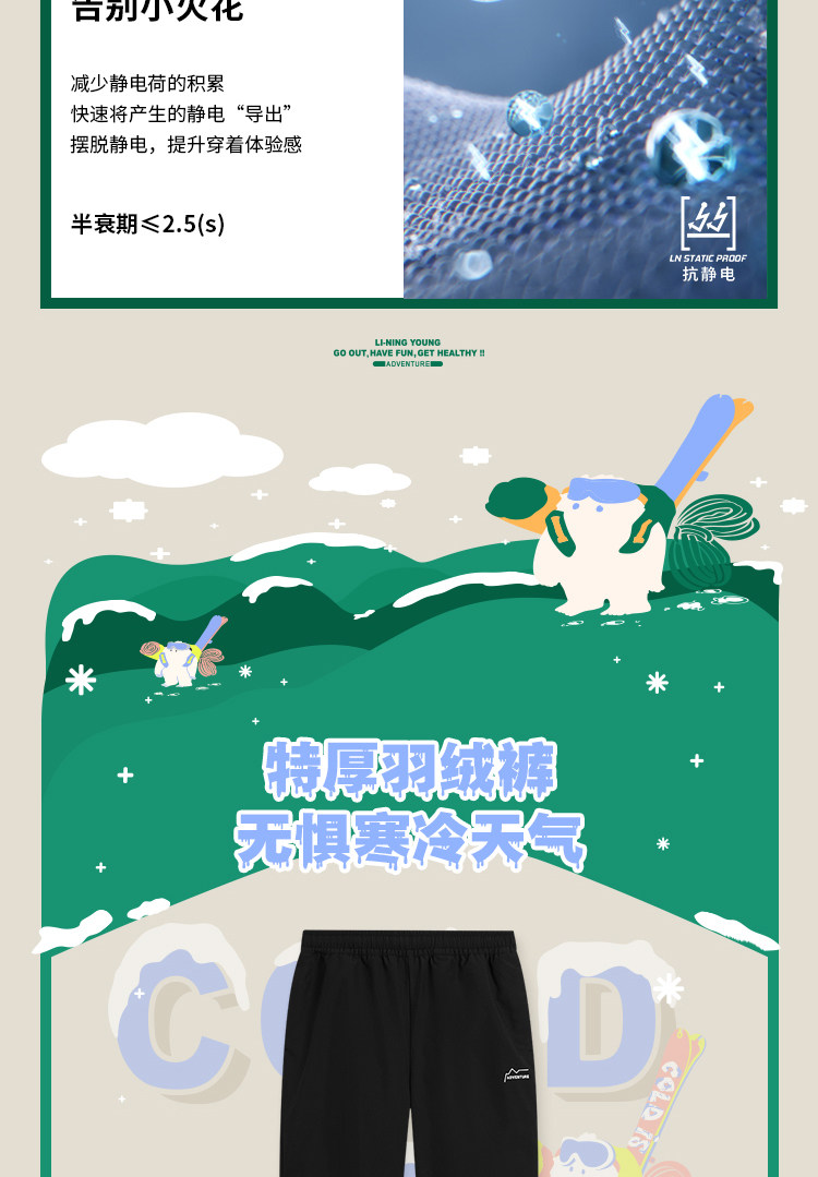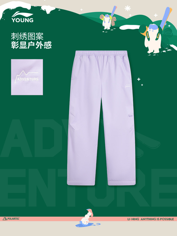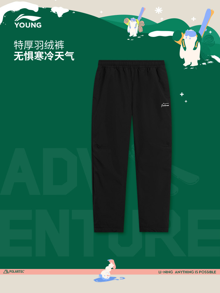 Li Ning, дорожные зимние бархатные штаны с пухом подходит для мужчин и женщин, детская одежда, подходит для подростков, свободный крой, утиный пух