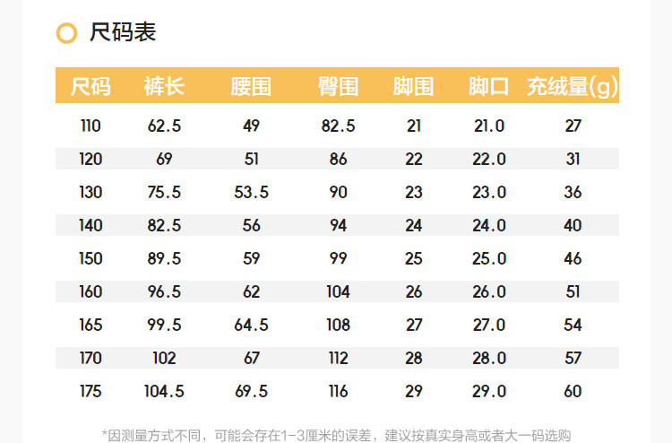 | Ростомер: | 110см (27г пухового наполнителя), 120см (пуховой наполнитель 31г), 130см, 36, 140см, 40, 150см (пуховой наполнитель 46г), 160 см (пуховое наполнение 51 г), 165 см (пуховое наполнение 54 г), 170см (57г пухового наполнителя), 175 см (объем перьевого наполнителя 60 г) |