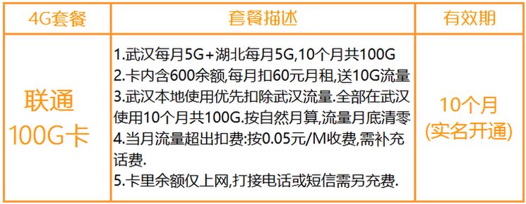 3. China Unicom Wuhan's 100G Пакет 10 месяцев. Помещение карты: 300 Юань