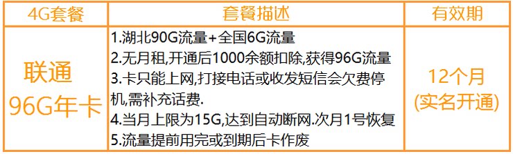 2. China Unicom Hubei девять 96 г кумулятивная пакетная карта цена: 396 Юань