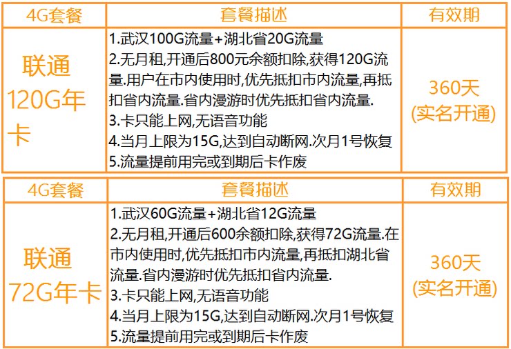 5. Unicom Wuhan nei 72G Совокупный пакет Год-цена: 288 Юань
