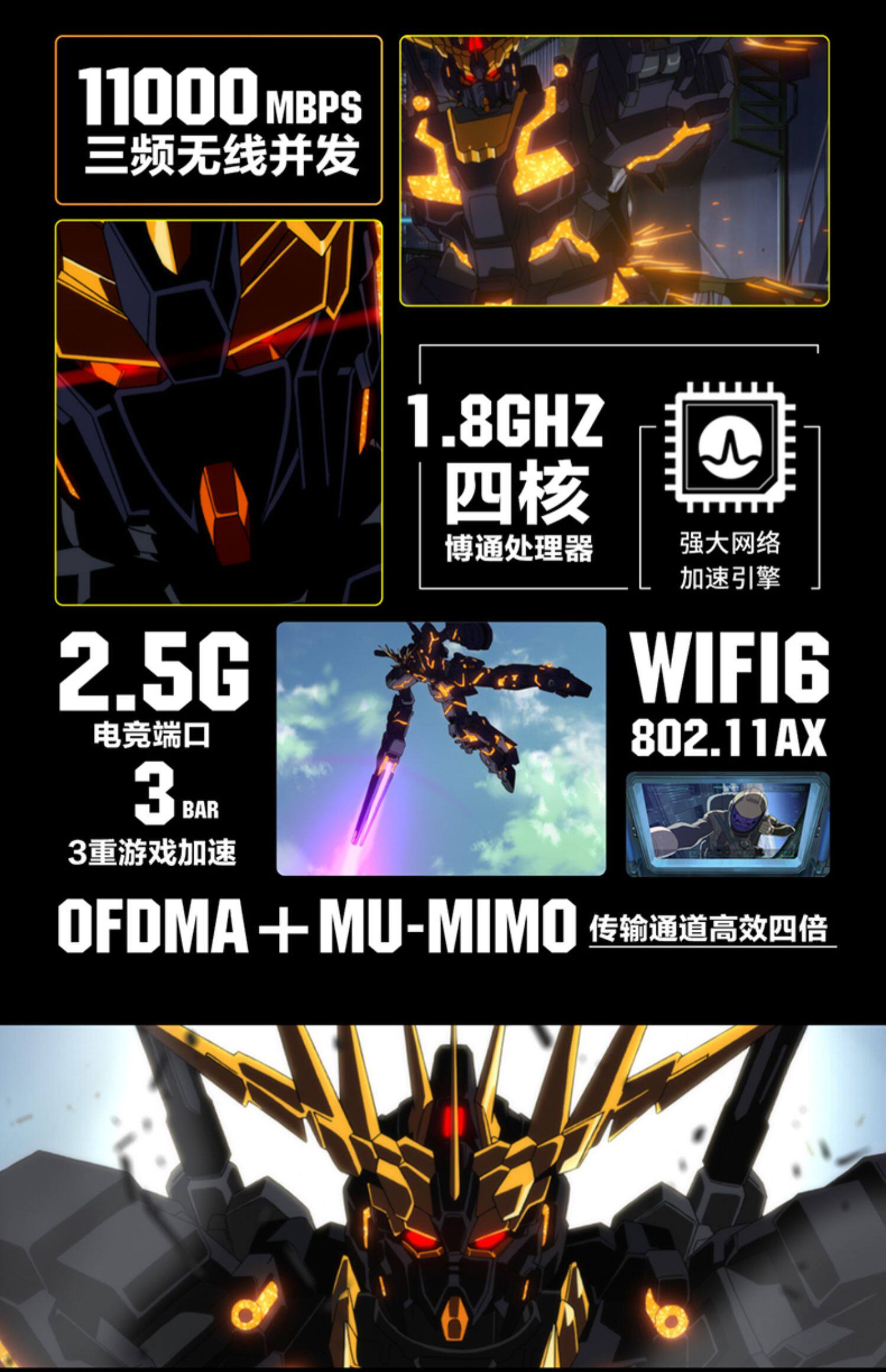 [Ограниченная продажа] Мобильный костюм Gundam Road Wi-Fi6 Совместная модель ASUS GT-AX11000 Gigabit Game Ускоряющий настенный маршрутизатор высокого уровня.