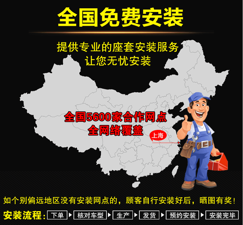 4. Установка установки не бесплатна, вам нужно заплатить 40 юаней за плату за установку в нашем магазине (мы фактически платим 80 юаней в выходной сигнал). План установки крышки.Клиенты могут выбрать, следует ли участвовать в этом мероприятии!Если вы решите установить покрытие сидений, опубликуйте положительный обзор по заказу обложки сиденья и опубликуйте более 6 картин (эта награда не может быть использована с помощью службы установки)