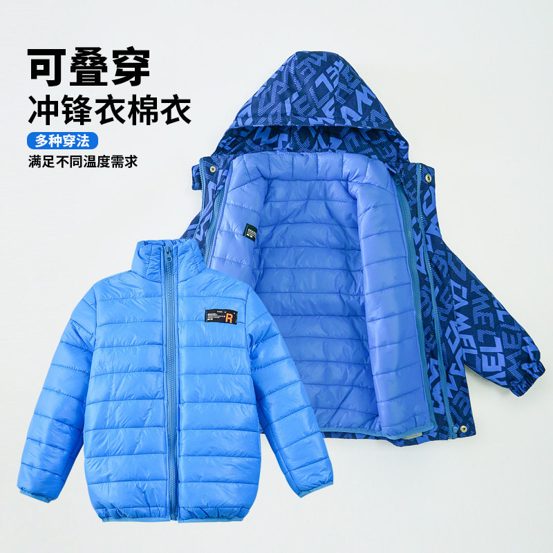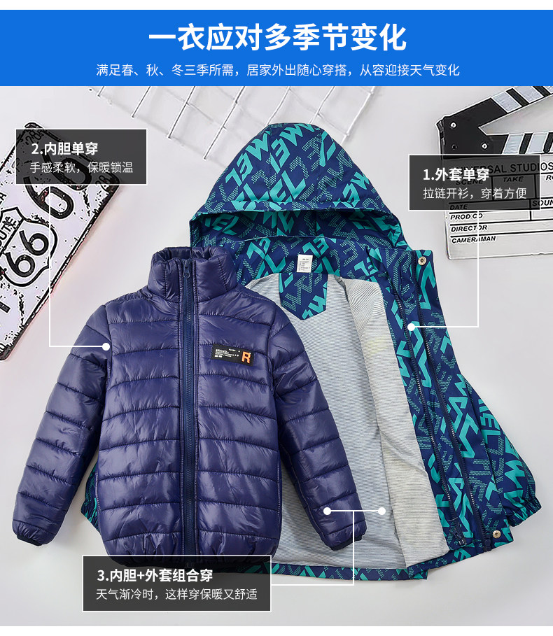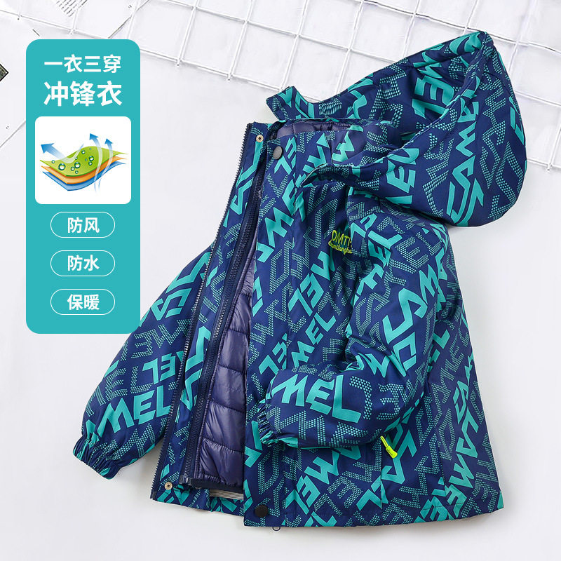 Демисезонная куртка для мальчиков, съемный пуховик с пухом, «три в одном»