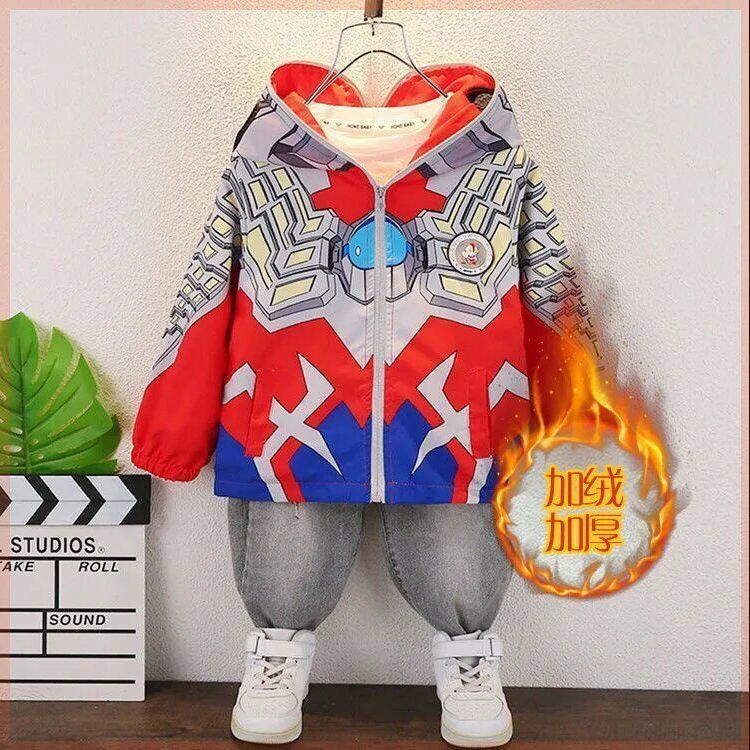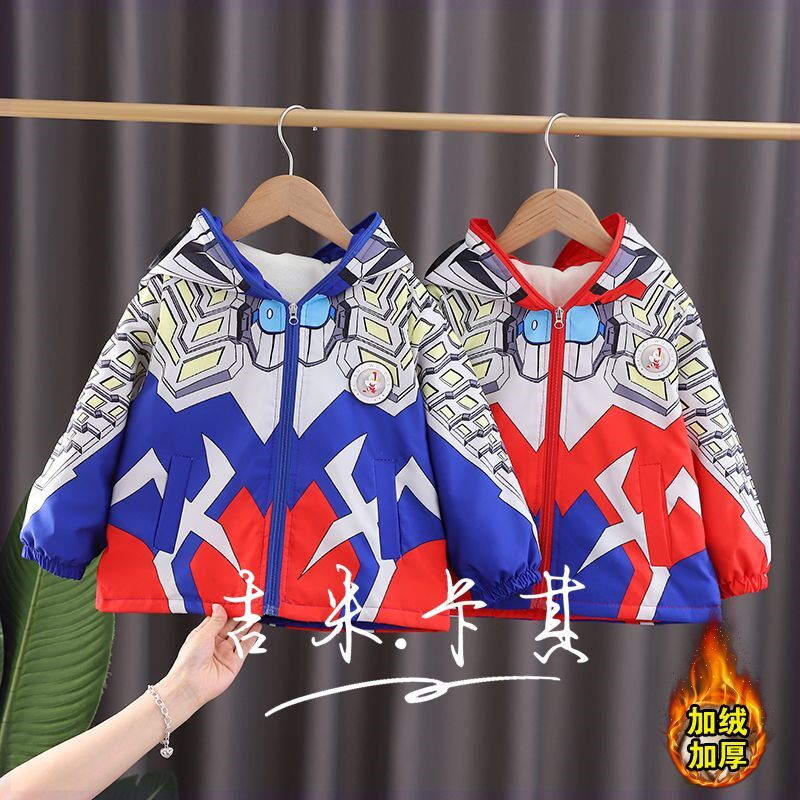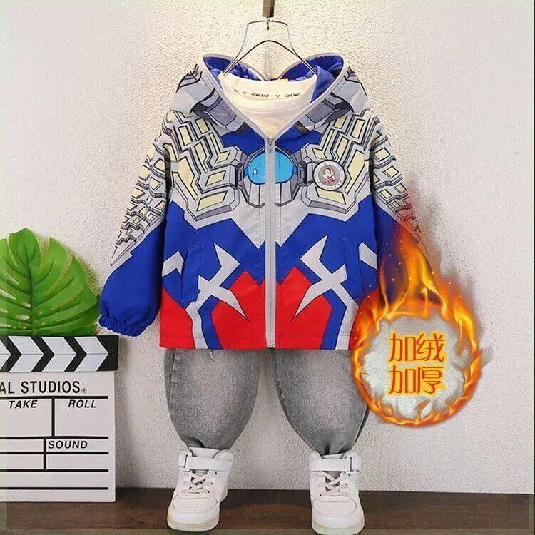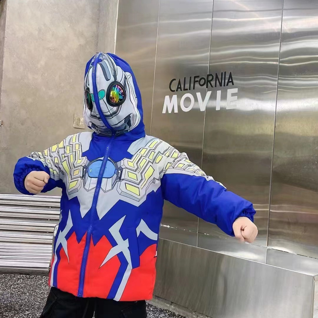 Ultra, бархатная утепленная зимняя куртка для мальчиков, очки с капюшоном, Ультрамен Тига, подходит для подростков