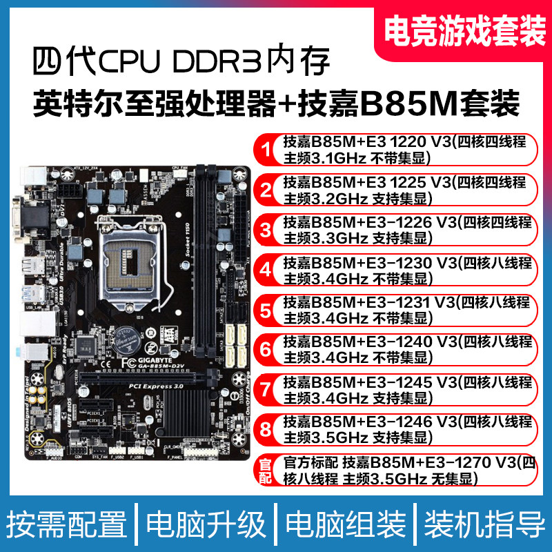 Растворимый E3 1220 1226 1230 1231 1245 1270V3 Giga B85 Second -Hand -Materbor Cpu набор