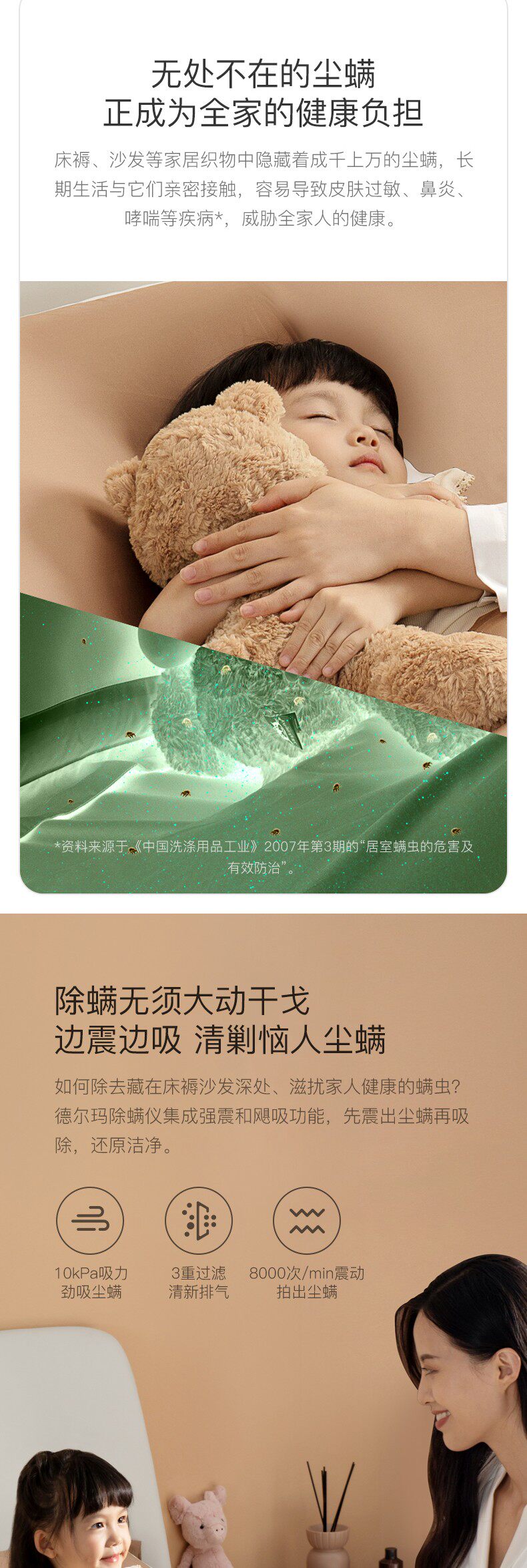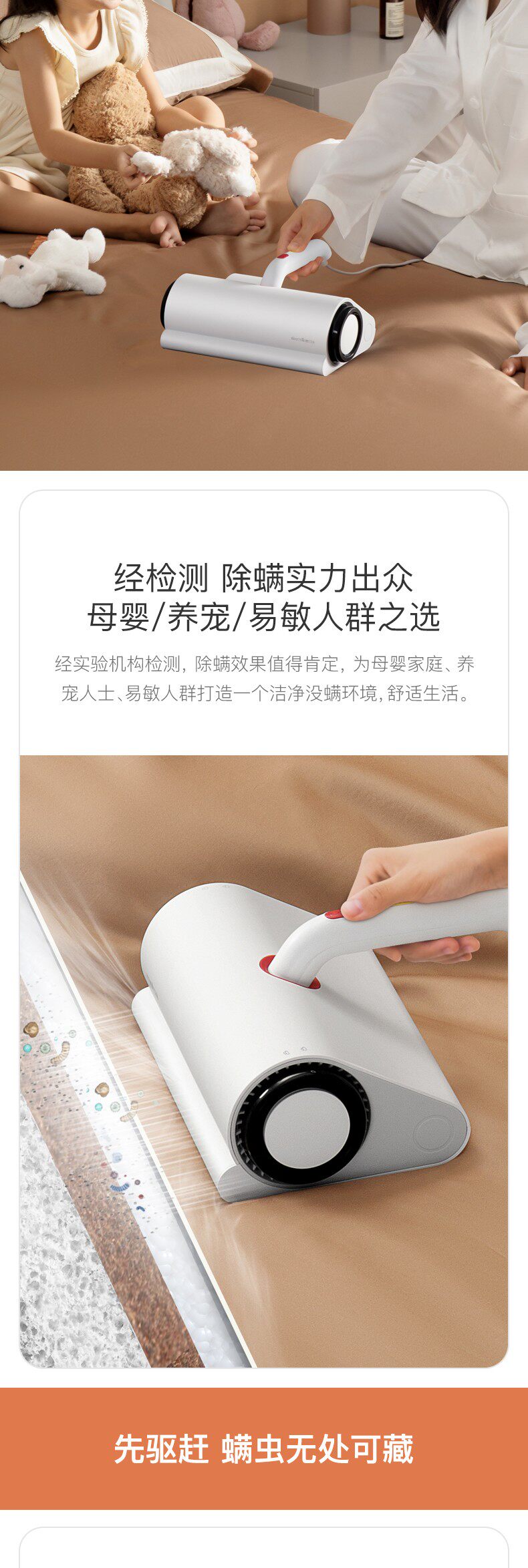 Небольшие пылевые клещи на домашнем ложе кровати для устройства клещей, многофункциональное сканирующее кровать пылесос, чтобы удалить артефакты клещей