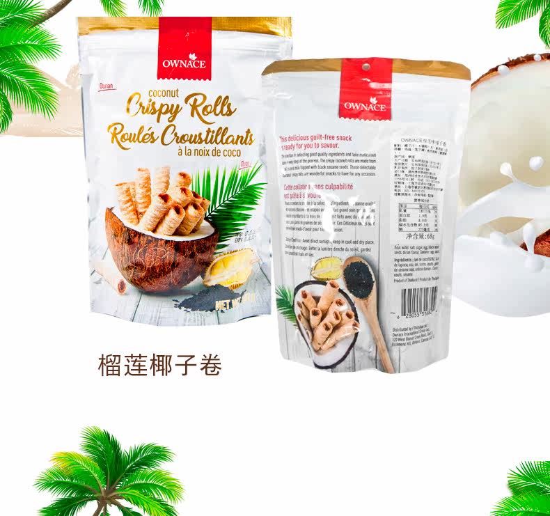 Тайский фирменный кокосовый яичный ролл Собственные дурианские горчичные аромат ванильный ванильный ванильный совет со вкусом кокосовой хрустящий кокосовый