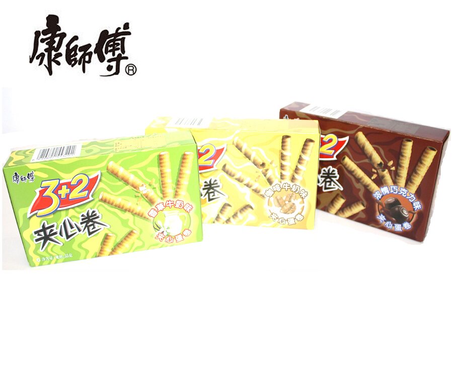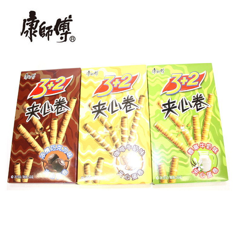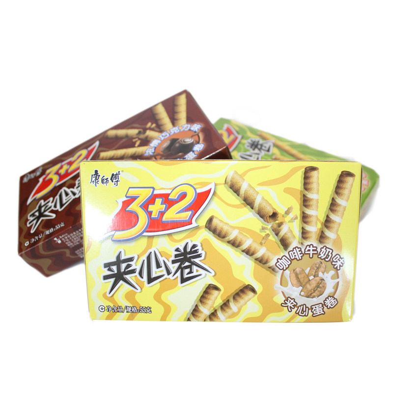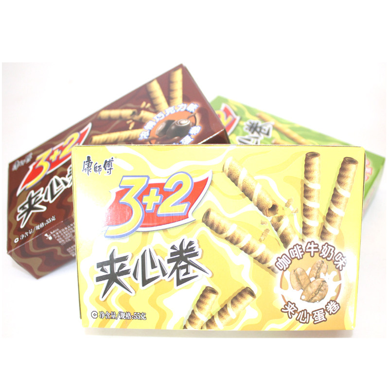 康师傅 3+2 сэндвич рулон 55 г яиц хрустящий ролл детский повседневное закусочное ванильное молочное шоколадное кофе вкусовое вкусовое аромат бесплатная доставка