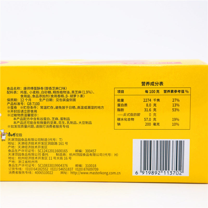康师傅 Яйцо хрустящее рулон яиц 108 г Подарочная коробка мгновенные хрустящие закуски крем