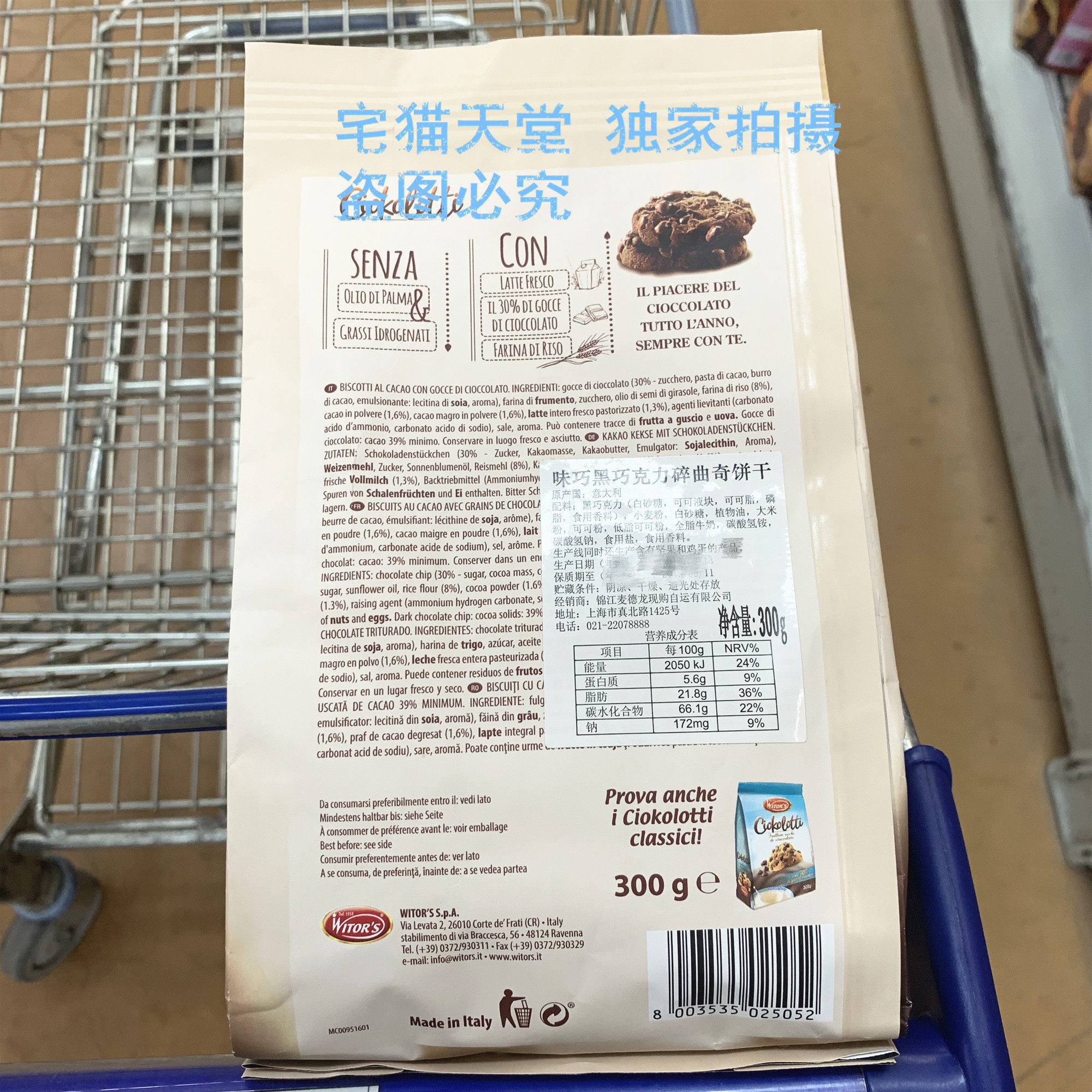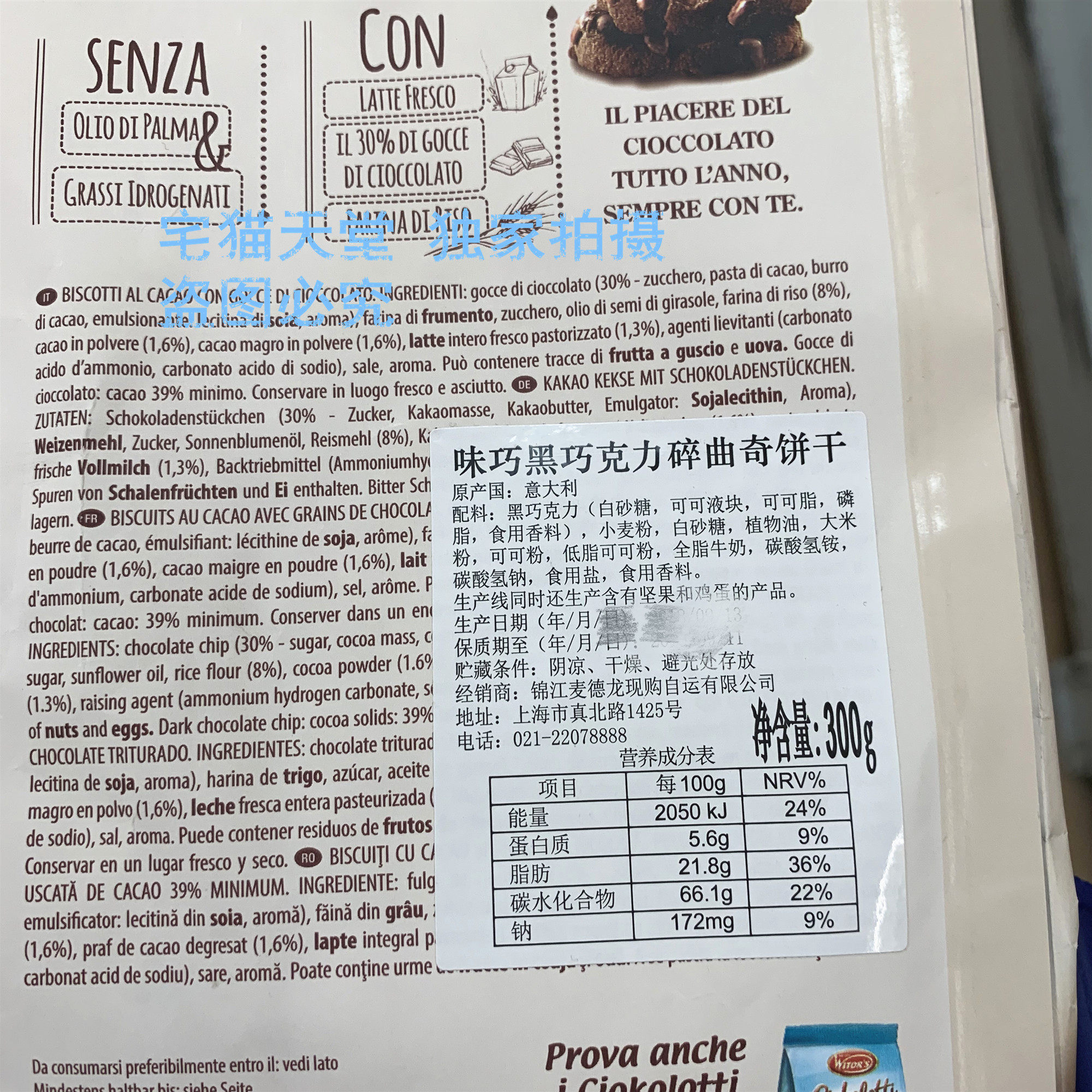 [Метро] Италия Виттус Виттус Фрагмент Черный шоколад Фрагменты печенье печенье 300G