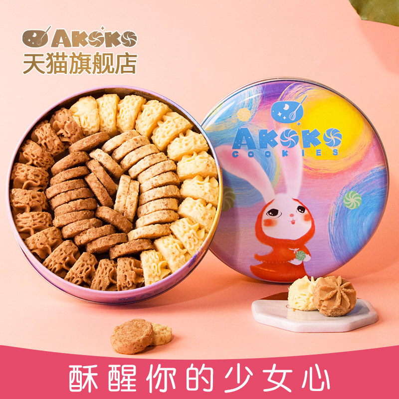 AKOKO Подарочная коробка с высокой стоимостью классическое цветочное печенье, тонкое хрустящее хрустящее хрустящее печенье с четырьмя вкусом, печенье, печенье, оригинальный кофе 320G