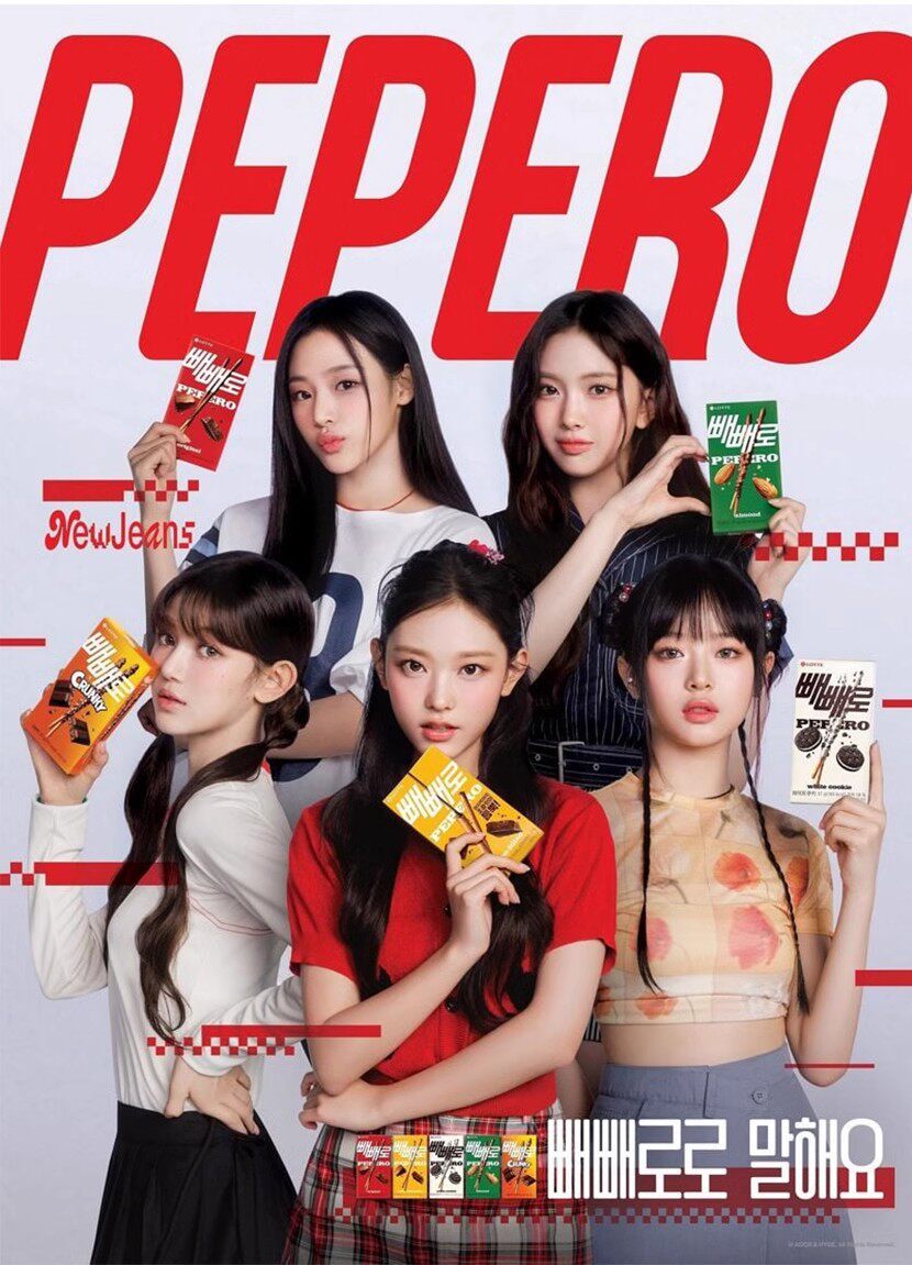 Newjeans рекламирует батончик Lotte Pepero pepero с шоколадной глазурью, импортированный из Южной Кореи
