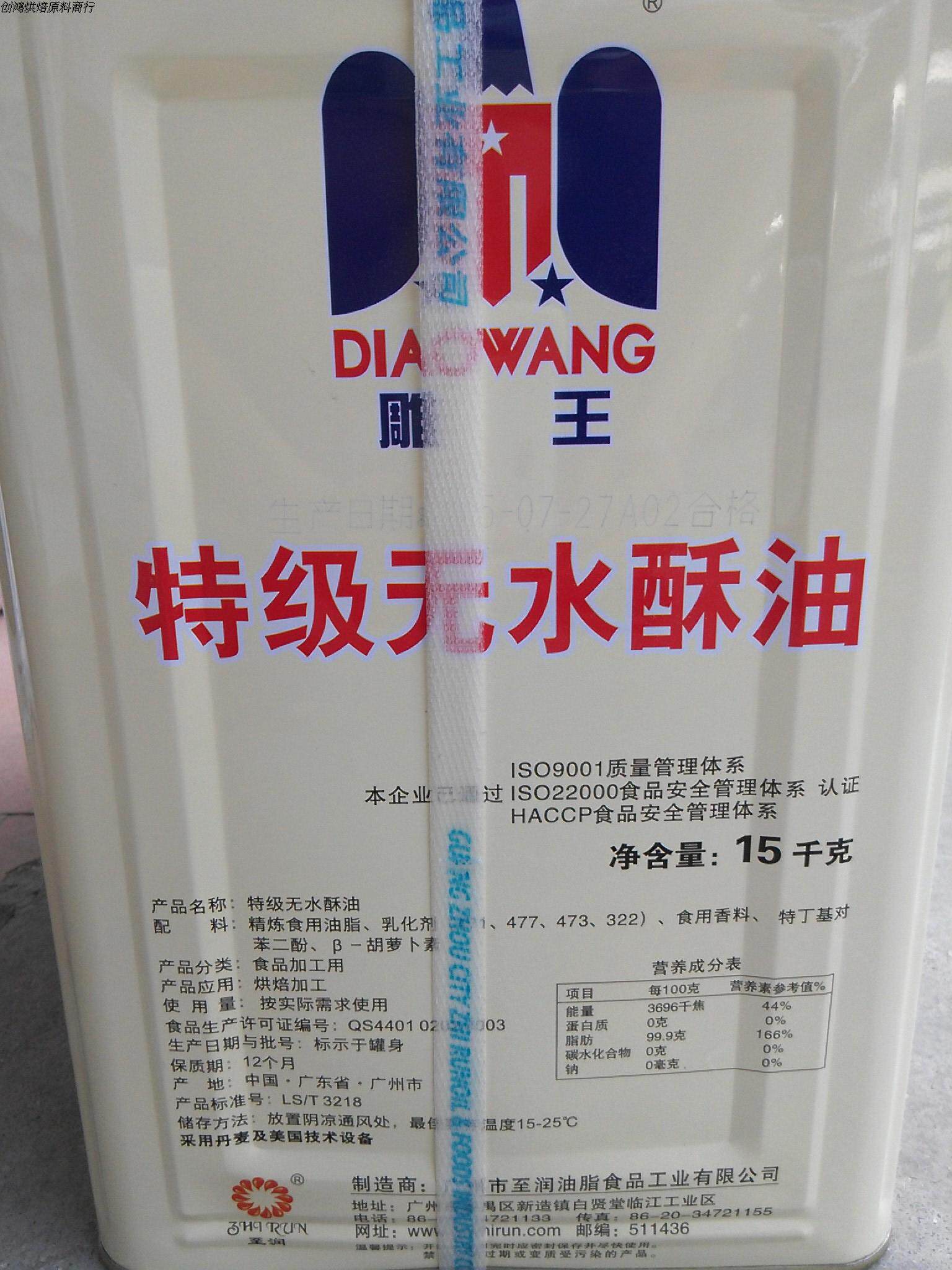 Безводное топленое масло особого сорта Diaowang 15 кг ствола
