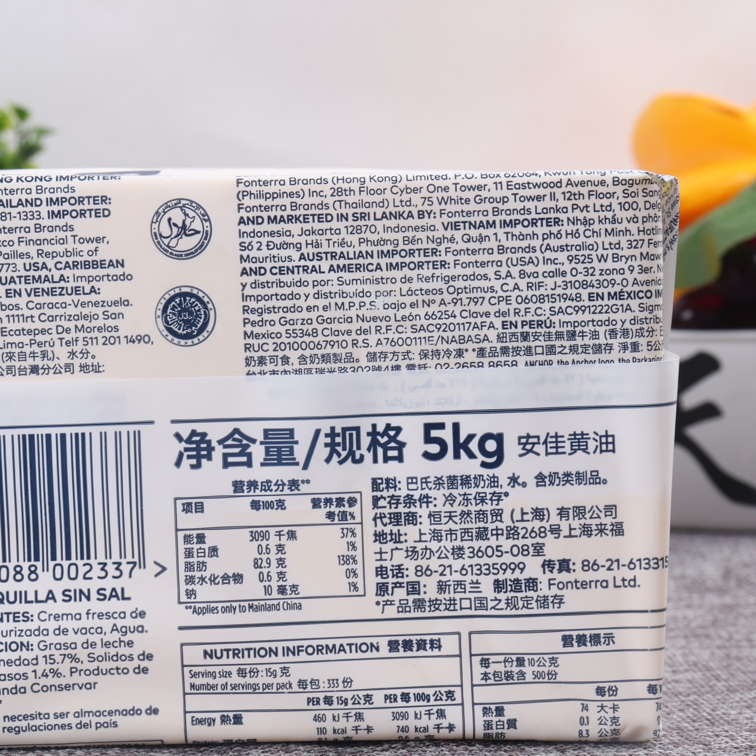Anjia Butter 5 кг Большой кусок света со вкусом животного масла запеченная дома коммерческий съедобный выпечка западного столового хлеб
