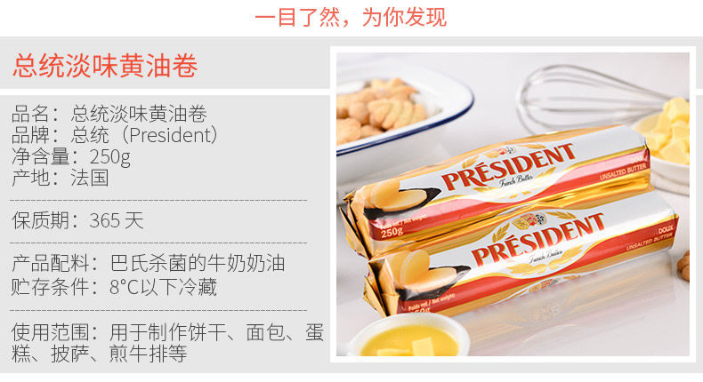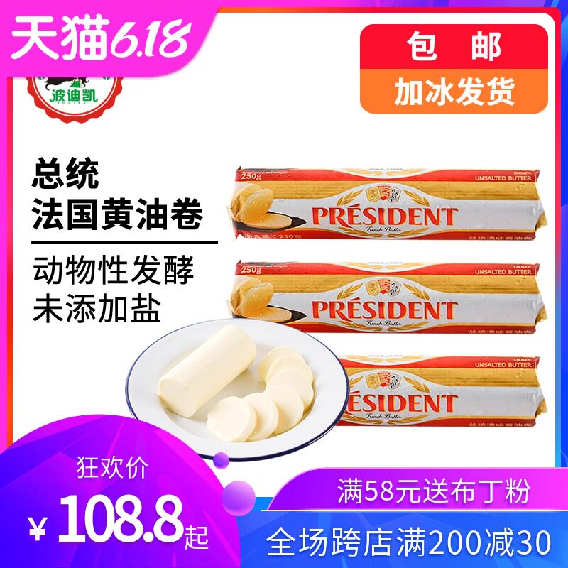 Президентский ролл масла 250G*3 Живоболочный фарментация Французская импортная домохозяйство из хлеба