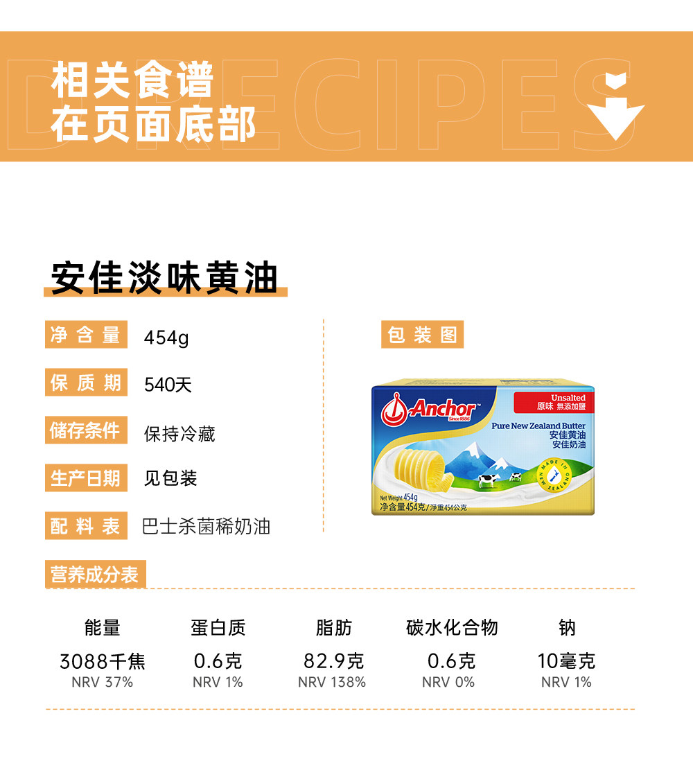 Anjia Butter New Zealand Импортированная светово -сокрушенная животная трава для выпечки масла для выпечки дома жареный стейк 454G