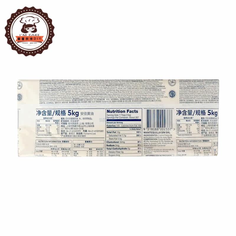 Anjia Butter 5 кг новозеландского импортного масла для животного пищевого масла Съедобное домашнее сырное масло запеченные ингредиенты