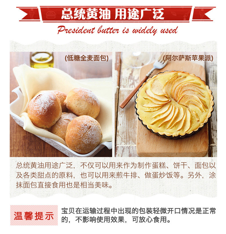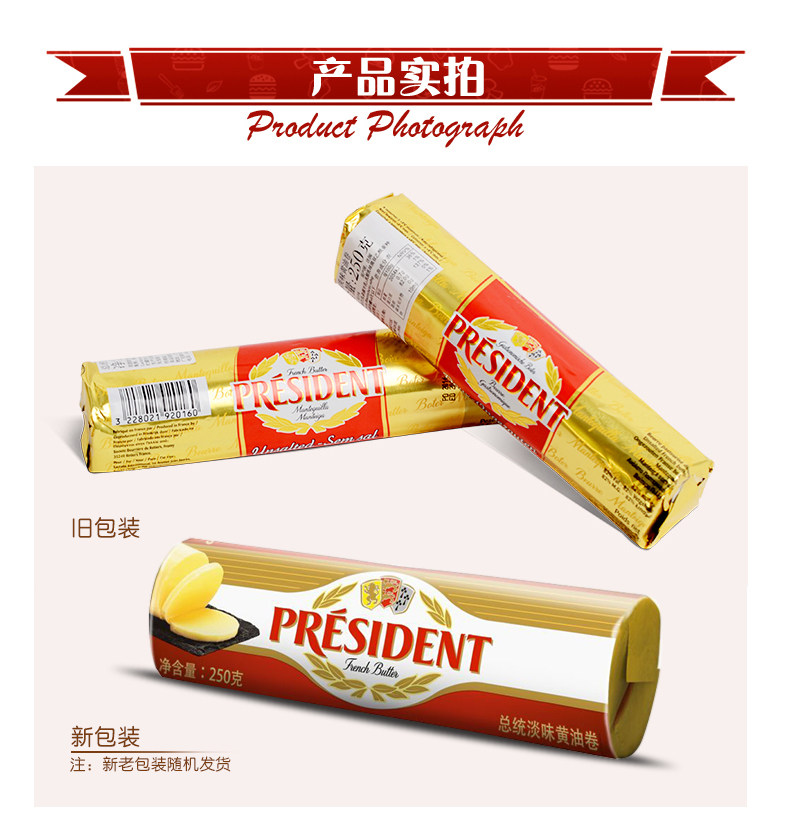 Импортный президент Световой масляный рулон 250G*2 рулоны снежинки хрустящий материал с ферментированным хлебным тортом авокадо свойства животных.