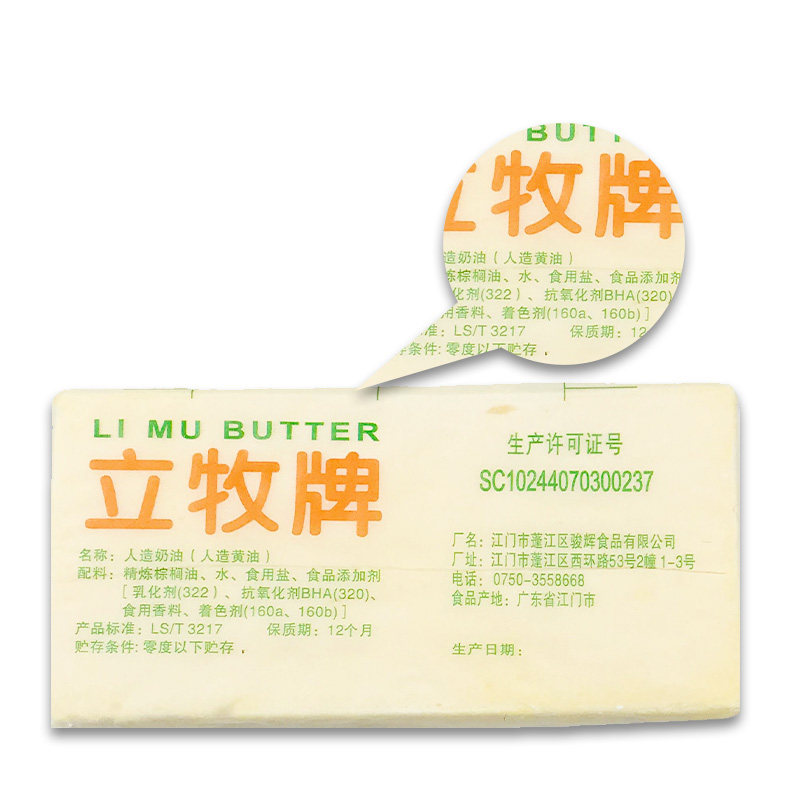 Li Mu Brand Butter Artificial Cream Lili Anima имеет соленый масло съедобное растение на основе авокадо 185G*40 кусочков всей коробки
