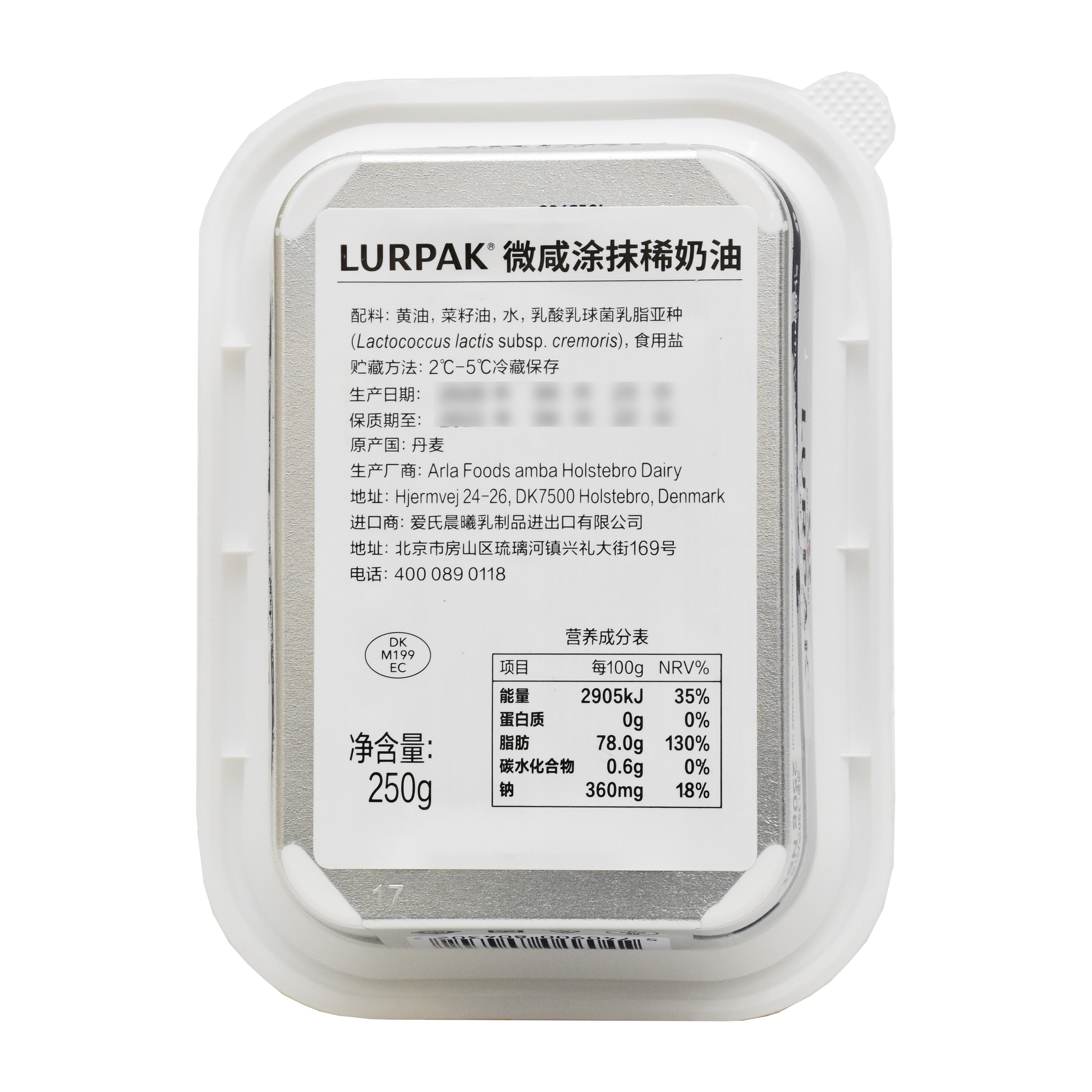 Дания импортировано Lurpak Applied Butter 250g Оригинальное серебряное сокровище Мягкое масло