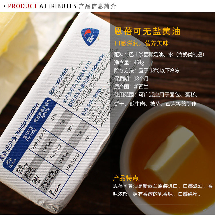Новая Зеландия импортированная Enbei светово -ароматное масло выпечка сырья Светое -авокадо животных 454G*3 детали