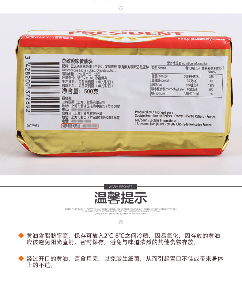 Президентское масла для животных 500G Запеченное дом съедобный жареный стейк Специальный Франция импортированное светлоноженное ферментированное масла