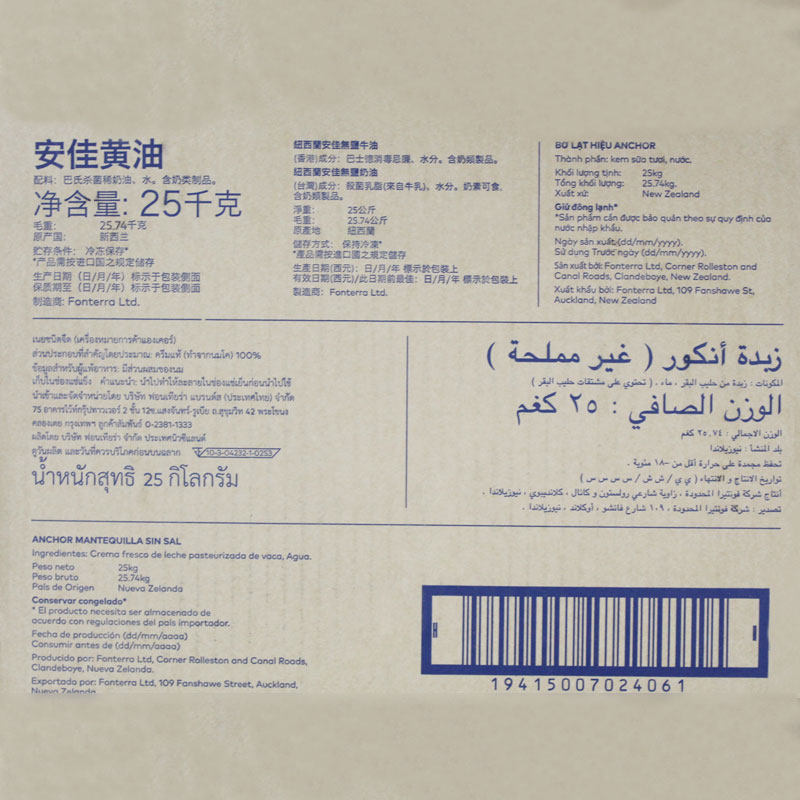 Anjia di Butter 25 кг новозеландского света, атакованная коммерческая оригинальная пекарня Annjia Большая упаковка съедобные животные жареные стейк