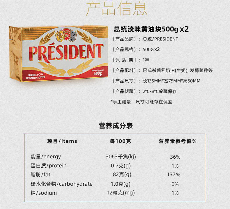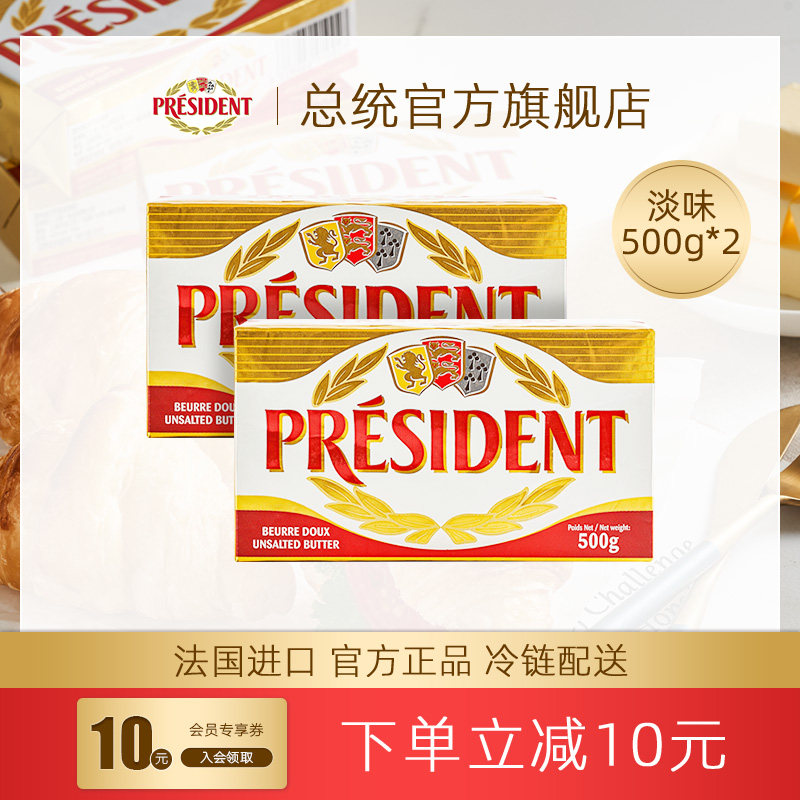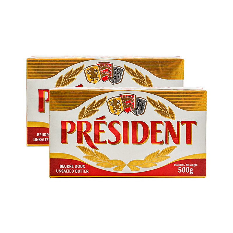 Президент президента (легкий вкус) Блок масла 500G*2 Импортированный ферментированный крем для животных домашнее выпечка масла