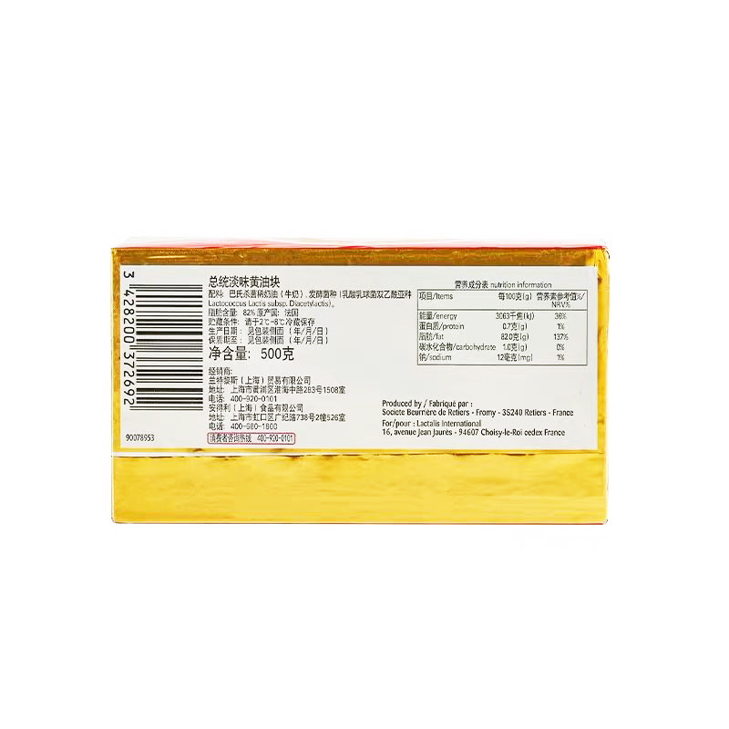 Президент светово -ароматный ферментированный масла 500G Импортированный хлеб для животных печенье для коры -вращающаяся домохозяйство Вест -Пойнт Мир