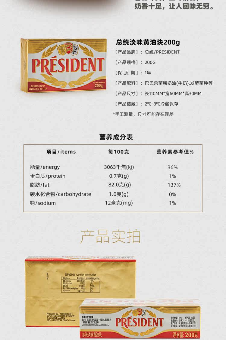 Французский президентский блок масла 200g*3 животное масло Decepita Снежное хрустящее печенье Семейные материалы для печенья
