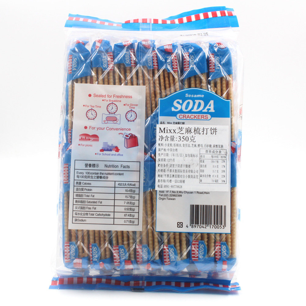 Тайваньский вкус Prestige Mixx Sesame Milk Milk Fragrant Soda Thin Crisp Biscuits 350 г закуски с закусками для пищи Специальные продукты