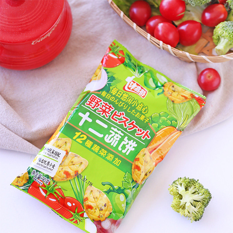 Двенадцать овощных печенья Небольшая упаковка японская тонкая хрустящая пряная детская кабинет завтрак офис. Случайные закуски