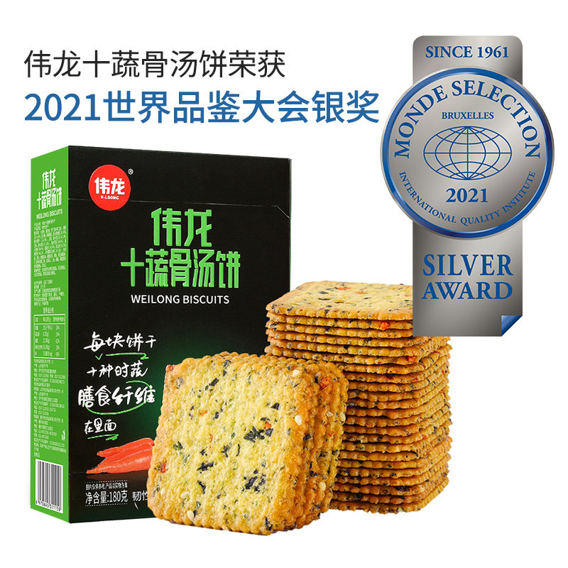 Weilong Ten Овощной костный суп-торт 180 г Крекеры Сухой пакет Закуски Маленькая упаковка Целая коробка Повседневная 𫔮Сухое офисное печенье