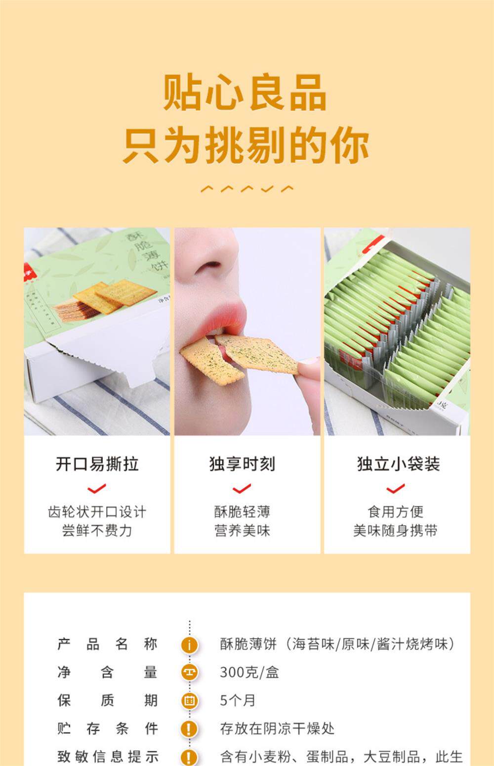 良品铺子 Хрустящее печенье 300GX6 коробки из морского моха соленое завтрак, без монетных закусок Независимая упаковка