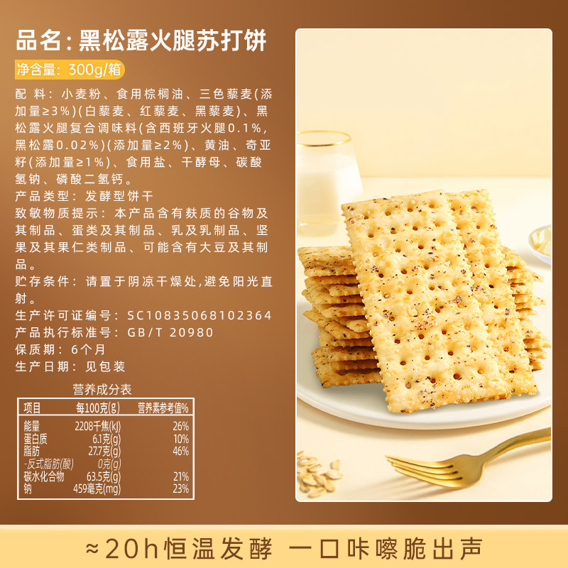 颜飘飘 Крекеры содовые с ветчиной и черным трюфелем 300 г офисные хрустящие закуски повседневные закуски
