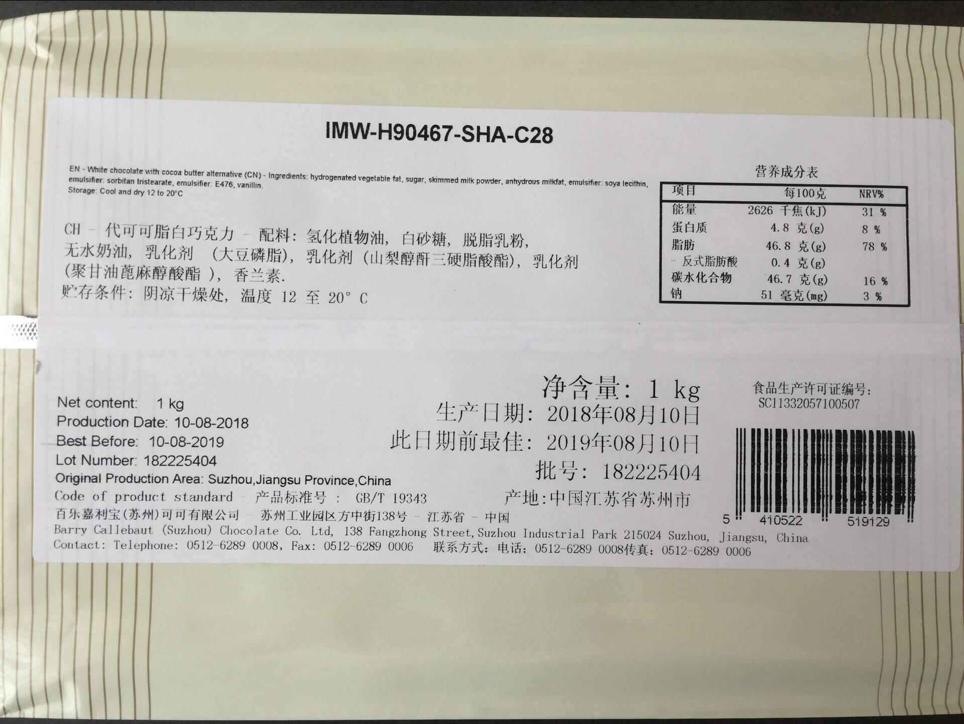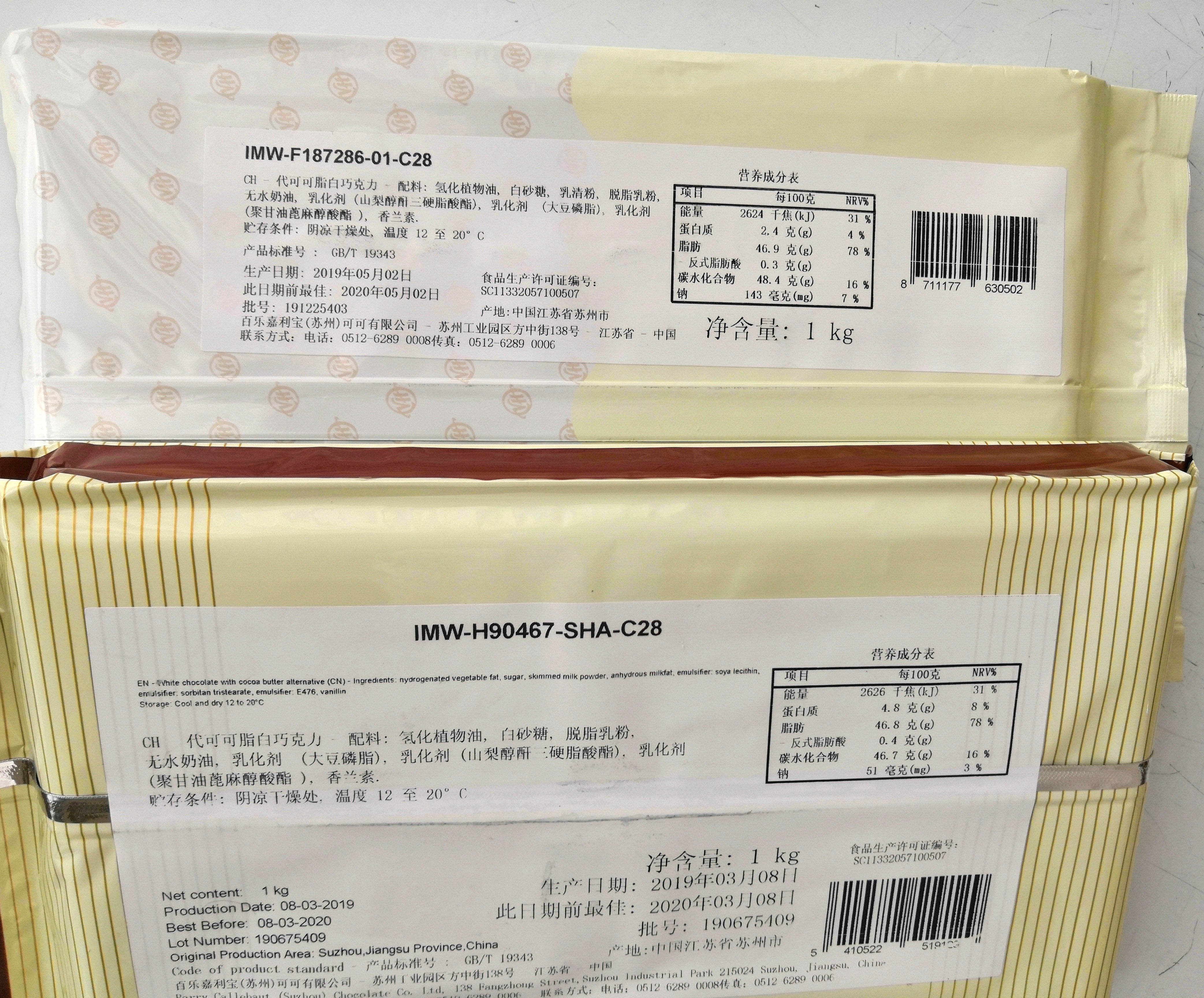 Fanhao Deng Черно -белый шоколадный кирпичи какао шоколадный блок 1 кг точка для лица корпоративное кальцинальное сырье Berlie Garriba