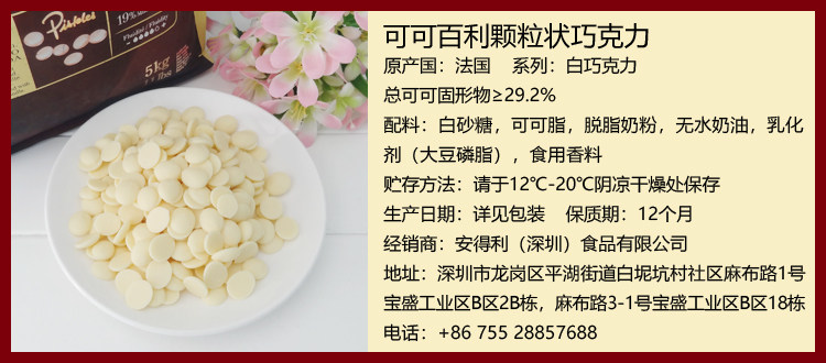 Франция импортировала какао Bailei Pure Cocoa Белый шоколад 500 г темного шоколада Монеты молочного шоколада