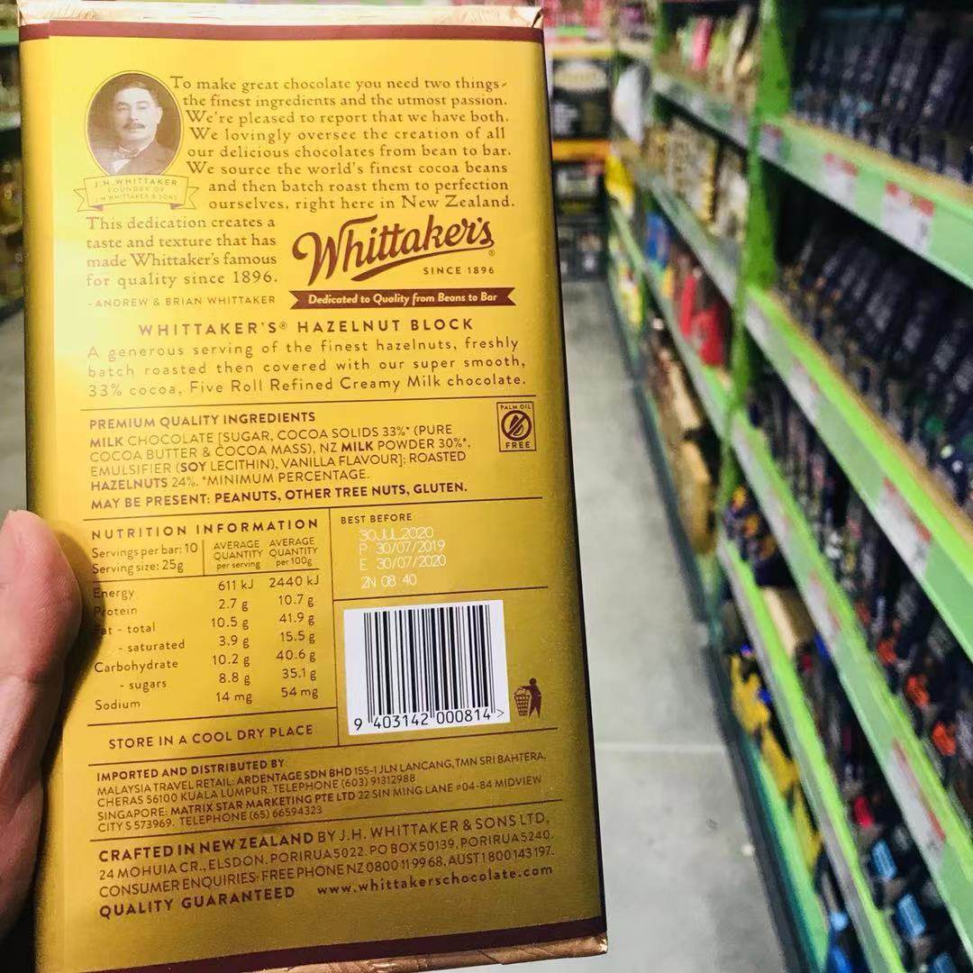 Новая Зеландия прямая почтовая почта Whittakers Белый шоколад молоко молоко молоко фурнет 250G 4 Прямая почтовая рассылка Packal