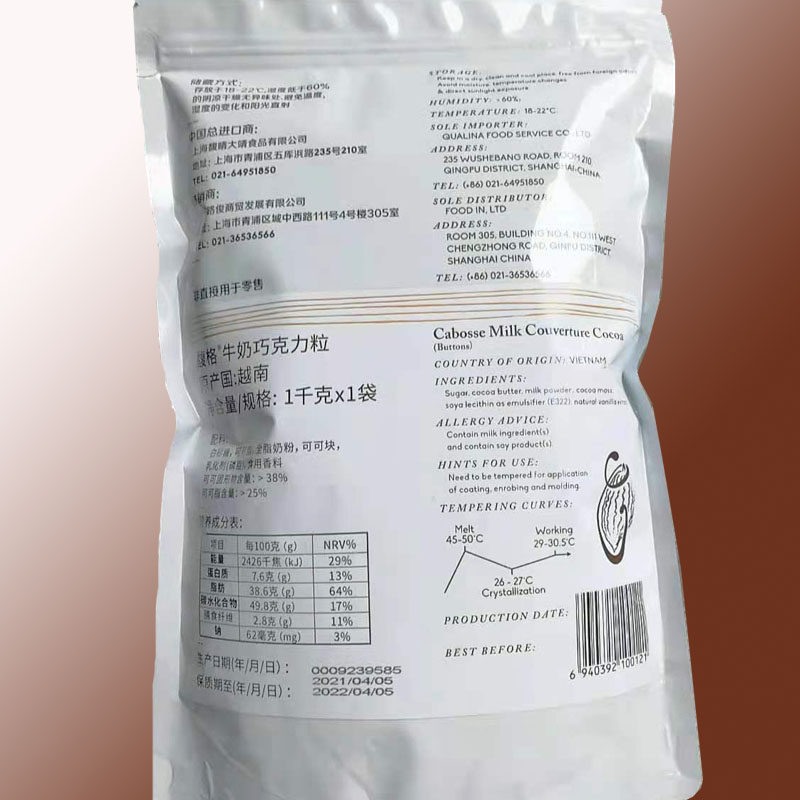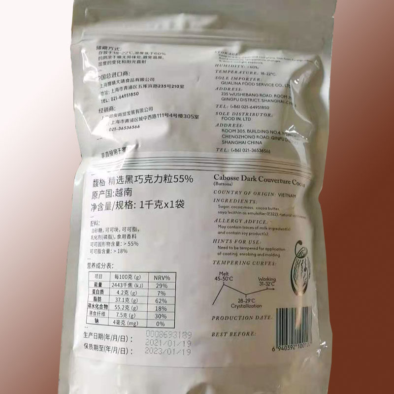 Вьетнамский Dagge Black Chocolate Grape 55%65%1 кг молоко 38%какао 30%40%40%выпечки ингредиентов