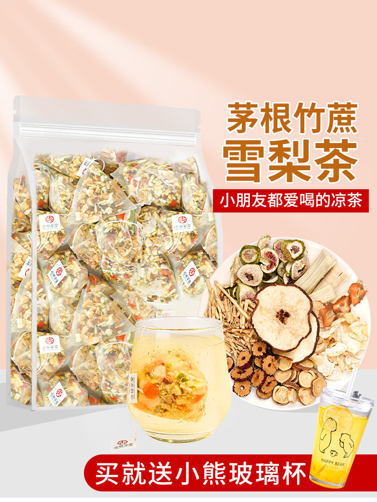 杏林草堂 Бамбуковая трость, пропиченный корень, пакетики для чая снежной груши, детские напитки с бамбуковой тростником, маленький грушевый суп подходит для чистого чая в горле
