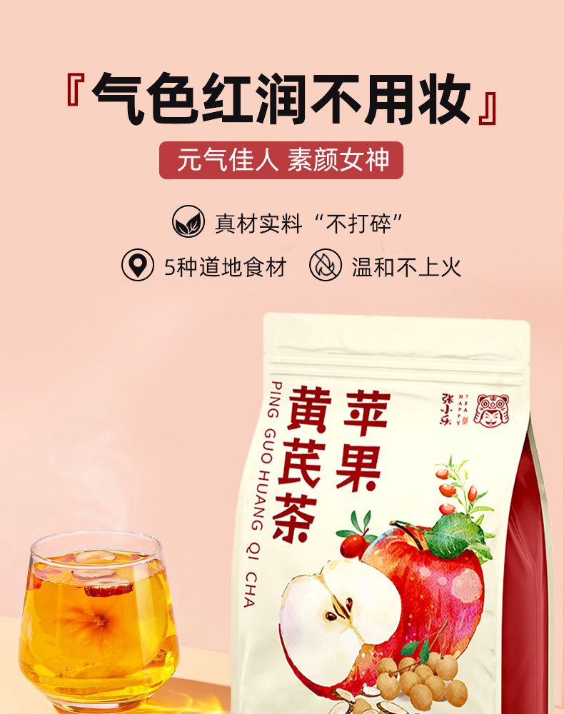 Яблоко, вода астрагала, Ophiopogon japonicus, красные финики, чай из ягод годжи, вода для девушек без макияжа, темно-желтый цвет лица, недостаточное количество ци и крови, чайный пакетик для здоровья.