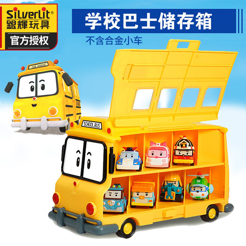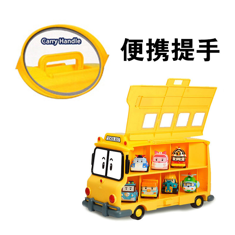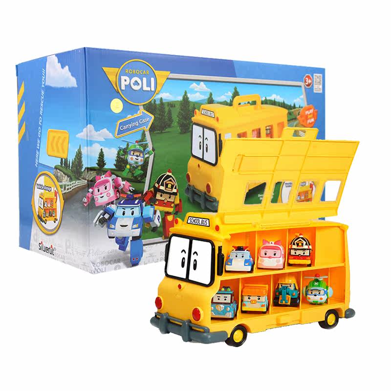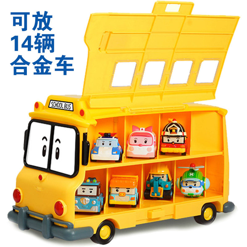 Школьный автобус, металлический трансформер, полицейская машина, робот, игрушка