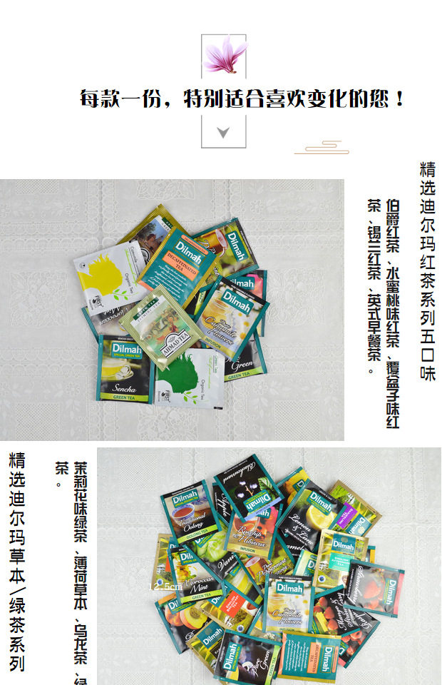 О DILMA:Dilmah是世界红茶三大品牌之一 , 无污染的高山原生态茶园 原产地采摘、原产地包装、纯手工采摘。