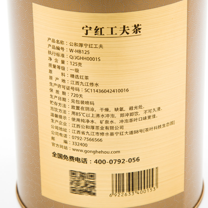 公和厚 Ninghong Gongfu jiangxi xiushui черный чай T One -Level Black Tea Tea Back Box -125G