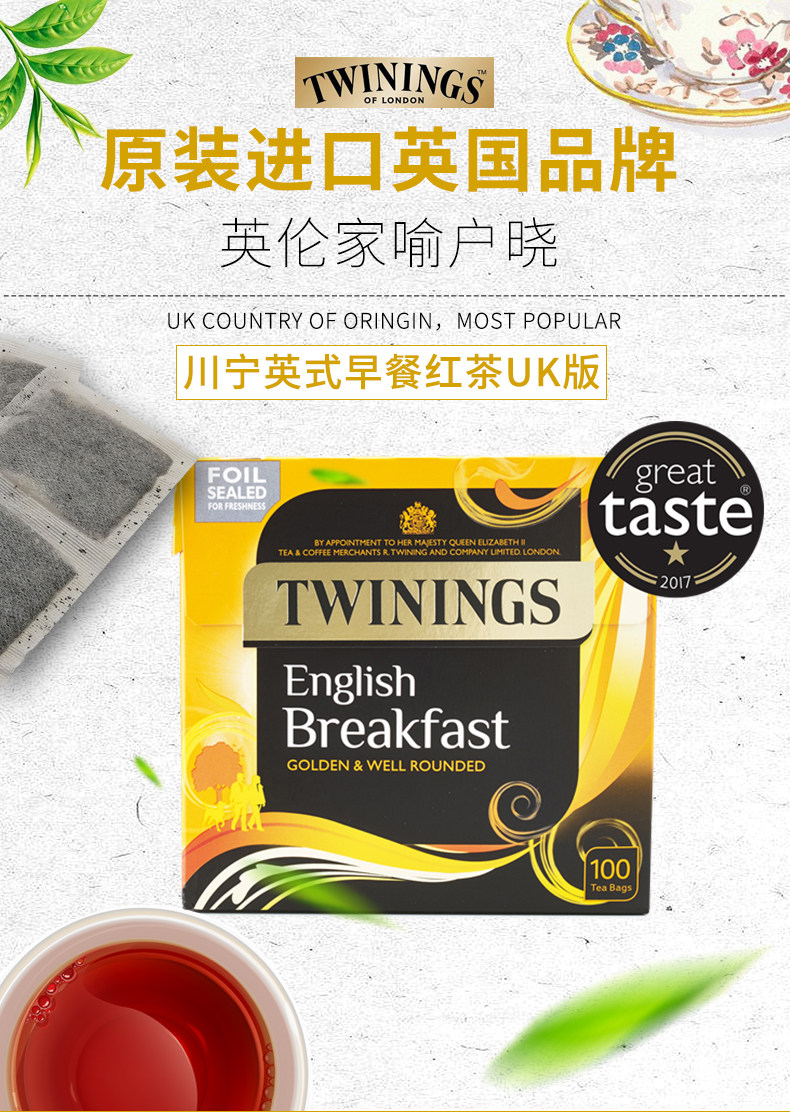 Британские импортные близнецы Tea UK Версия завтрак завтрак на завтрак черный чай 100 упаковка
