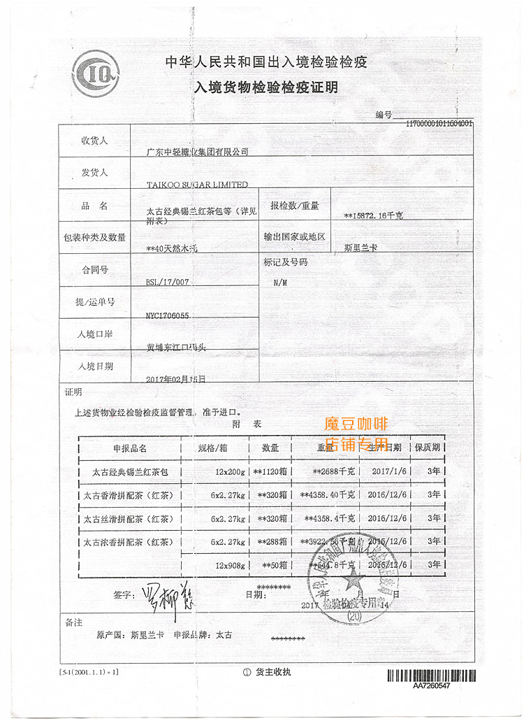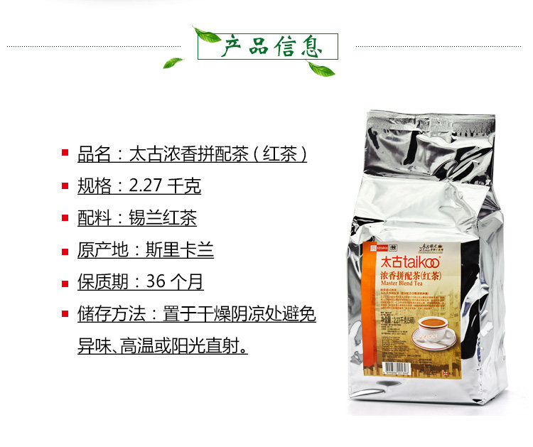 Производители Taikoo имеют фабрику в Шри -Ланке,Черный чай действительно производится в Шри -Ланке, импортируется из оригинального импортаЗнаки на сумке на сумке были равномерно выпущены черным чаем правительством Шри -Ланки для экспорта компетентного агентства черного чая.Подлинное развертывание формулы молока в стиле гонконг, Никогда не смешивайте немного домашнего чая, качество очень хорошее, и реальное качество и цена.