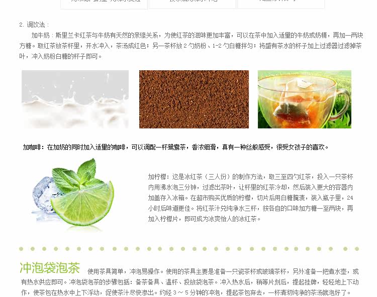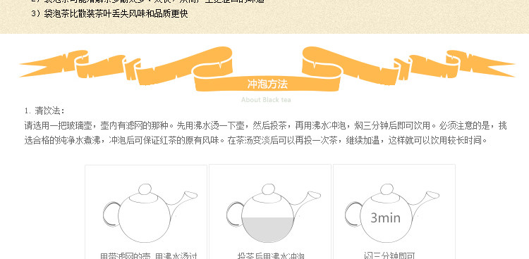 Метод питья: Британский черный чай очень терпимый, добавить молоко, варенье и сливки, различные методы творческого питья. 1) Молочный чай: после пивоварения в соответствии с методом прозрачного напитка, отфильтруйте чай, добавьте молоко и сахар в соответствии с личными предпочтениями.